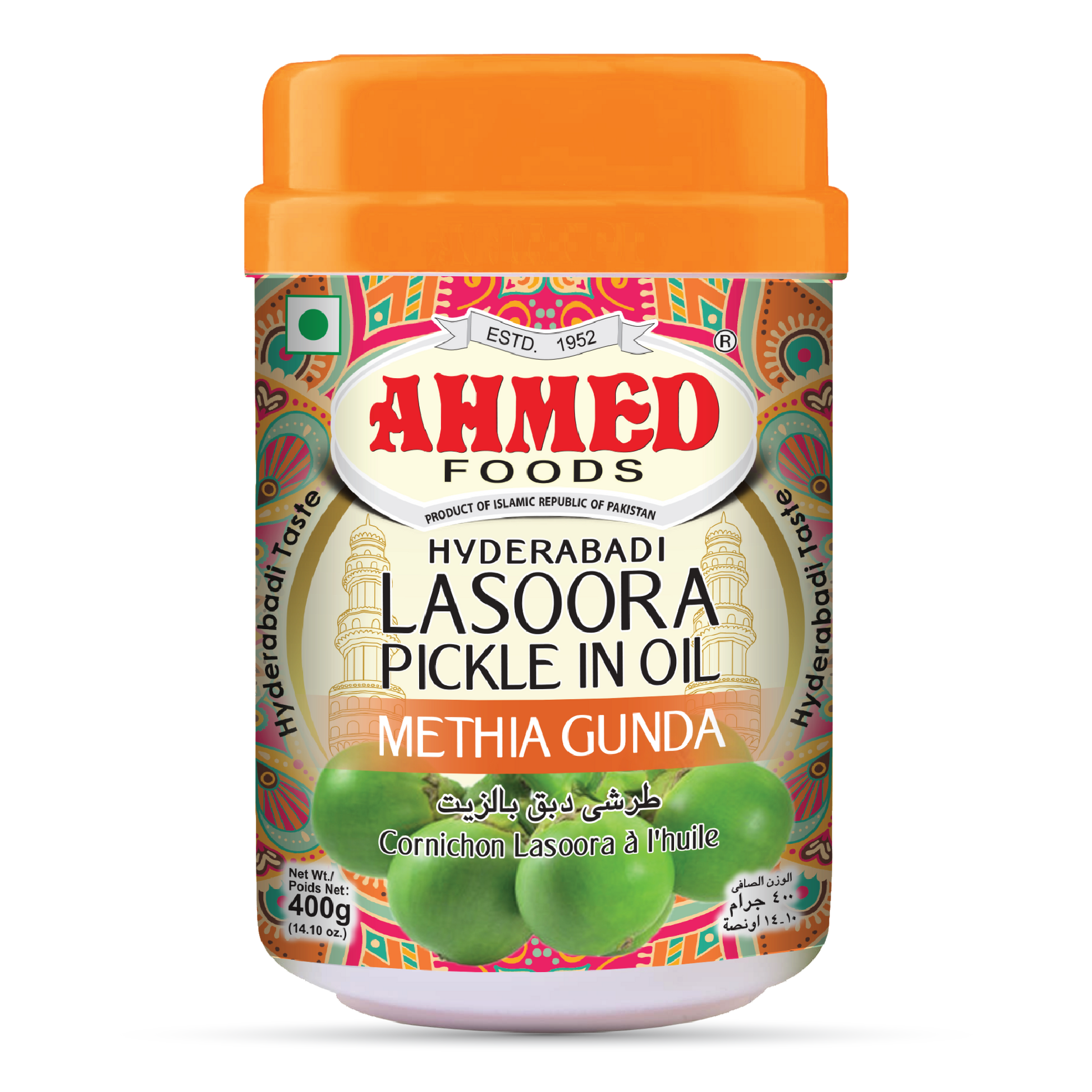Ahmed Hyderabadi Lasoora Pickle β Available in 330g, 400g & 1kg Enjoy the authentic and traditional taste of Ahmed Hyderabadi Lasoora Pickle, made with handpicked lasoora (Indian Berry) and blended with rich Hyderabadi spices. Perfect for adding a tangy, spicy...